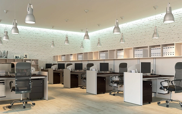 Перегородки и мебель имеют модульную конструкцию, что позволяет быстро и легко перемещать рабочие места на новое место.