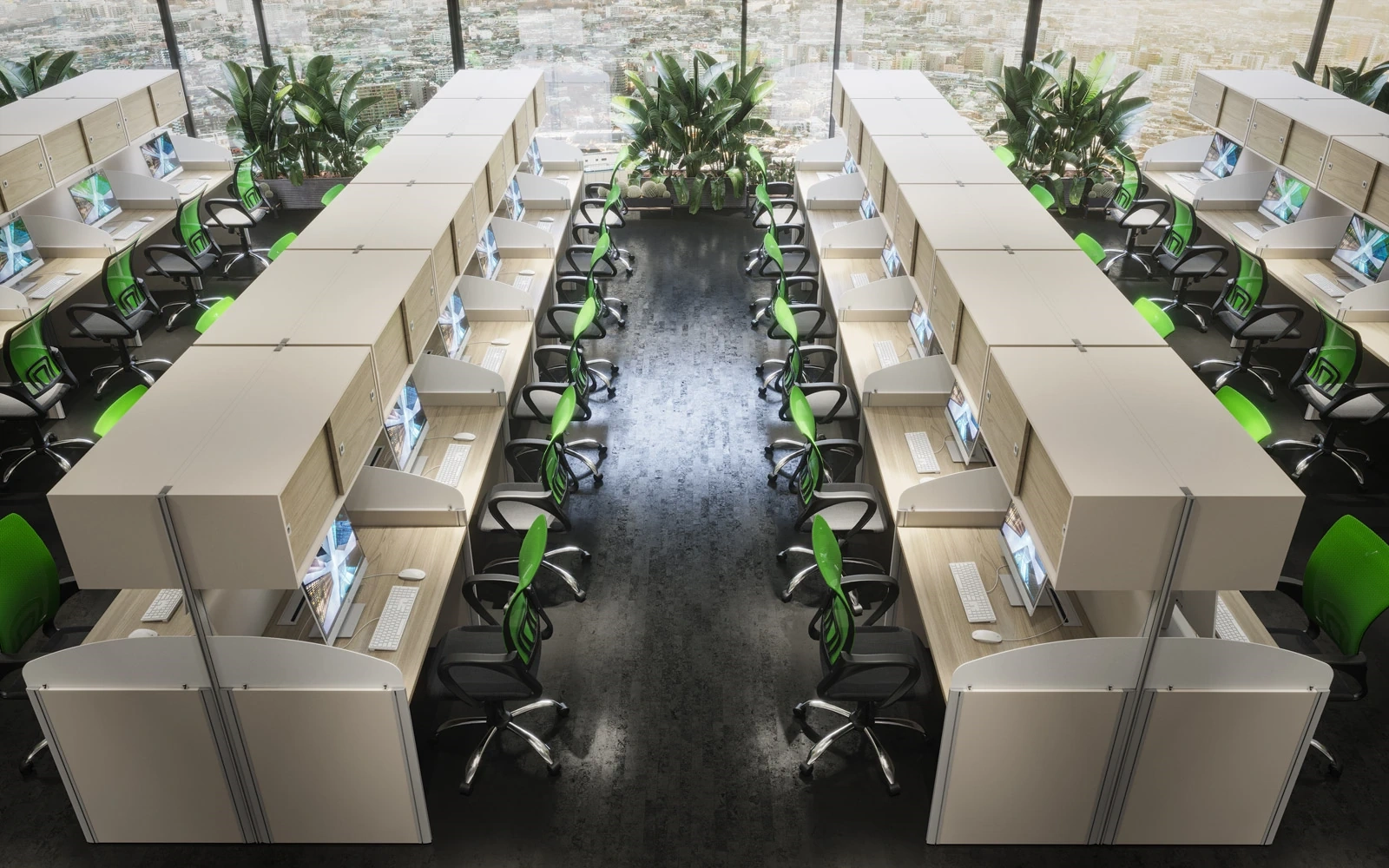 Использование разделительных перегородок создаёт высокий уровень комфорта, позволяя каждому оператору чувствовать себя в личном пространстве, не нарушая при этом работу всего коллектива. Продуманность каждого элемента обеспечивает максимальную эффективность рабочего процесса.