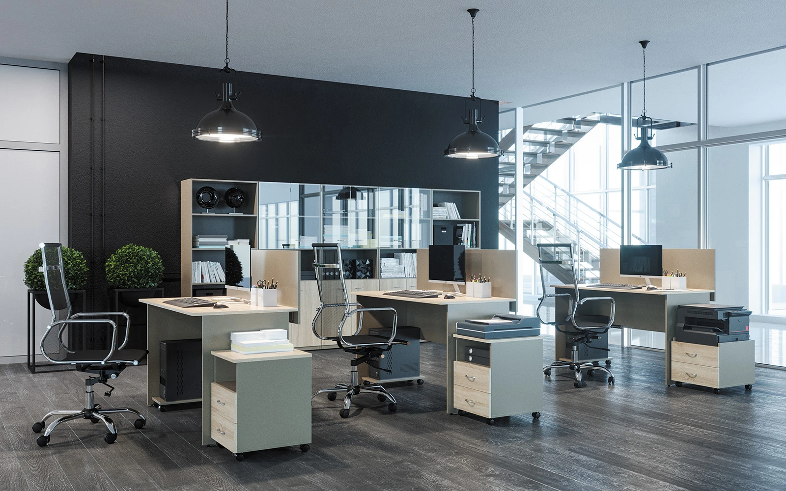 Мебель для персонала «Work» объединяет самые современные и модные тенденции в обустройстве офиса. Функциональность элементов адаптирована к актуальным условиям офисной работы. Четкость линий и геометричность подчеркнуты